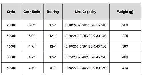 xtremely높은 링 용량에 의해긴 주조 거리와 폭넓은 타겟 에리어.크기2000이 필수의 미디어크기격자의 릴은 커 유지 하고 있다고 복수의 라인을 사용,4000?5000은,6000이 옵션」의 보트의 토지를 지향하는 빅 one''s」를 입력 합니다.이것은 피싱으로 최적입니다.
