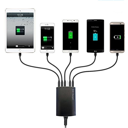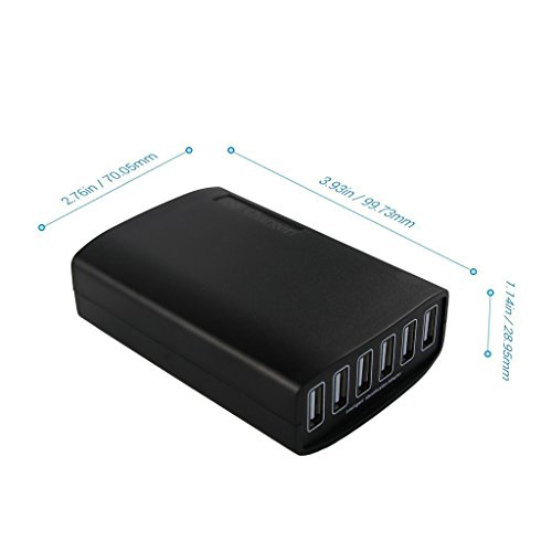 ZYZH PowerPort 60W 6-Port USB Charging Hub Multi-Port USB Charger for Apple iPhone 7/7plus 6s / 6 / 6 Plus, iPad Air 2 / mini 3, Galaxy S6 / S6 Edge / Edge+, Note 5 and More - Retail Packaging - Black