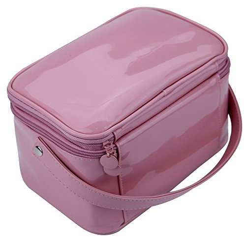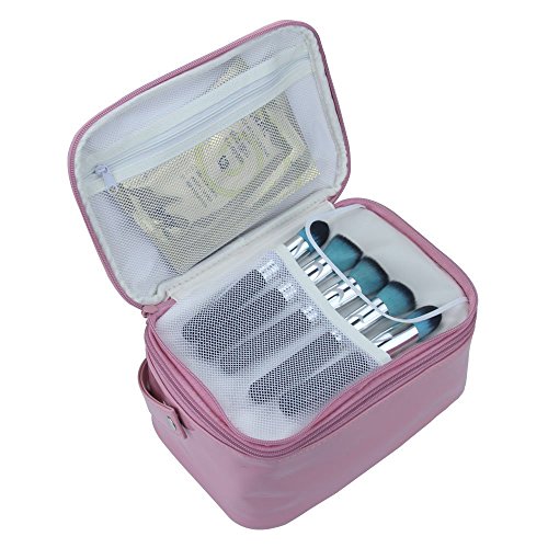 Samtour 2 layer Large Capacity Cosmetic Makeup Brush organizer with Belt Strap Holder Multifunctional makeup Bag for Travel Home pink (Pink)