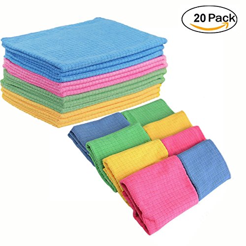 (20 pack) 12 in. x 16 in. Microfiber Cloths Quick Absorbent Easily Remove Oil & Smudges- 4 Colors