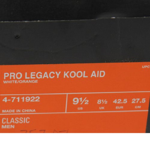 - Binding : Apparel- Brand : Reebok- Color : White / Orange- Department : unisex-adult- EAN : 0883780440125- ProductGroup : Shoes- ProductTypeName : SHOES- Size : 9.5 M US- Title : Reebok Kool - Aid Pro Legacy- UPC : 883780440125