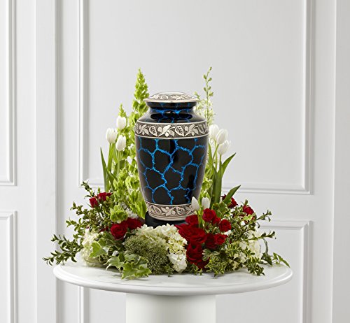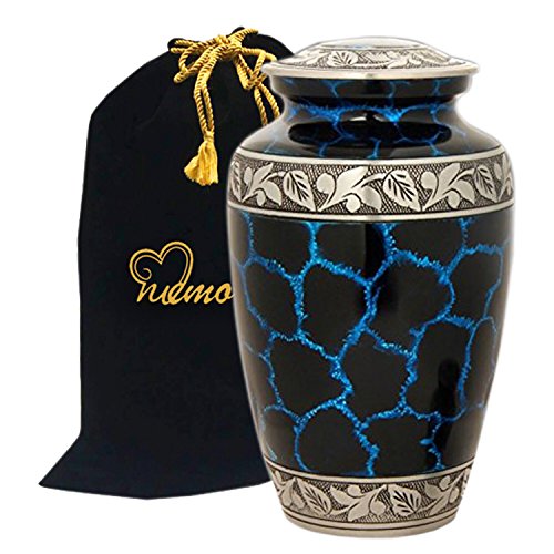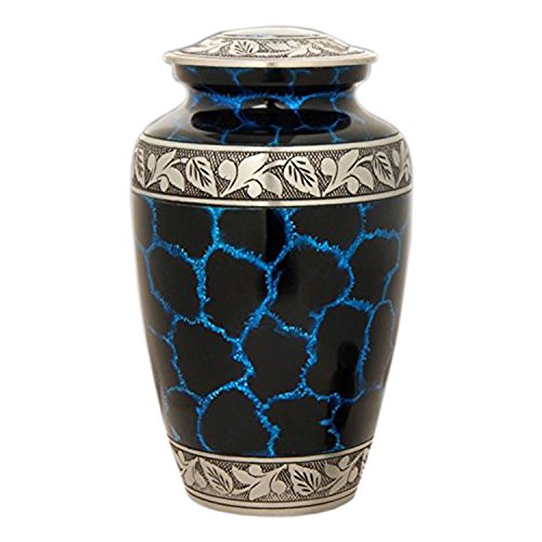 Galaxy Blue Cremation Urn - Large Galaxy Urn - Adult Blue Urn for Human Ashes - Handcrafted Blue Funeral Urn with Silver Band