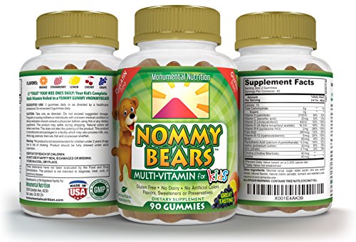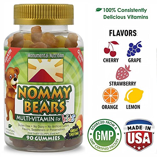 Nommy Bears is your complete multivitamin for children (and adults). Our special bears are made with only the highest quality natural ingredients and taste awesome. Kiss goodbye to artificial colors, flavors, or sweeteners. Nommy Bears doesn't have any of it. Parents know that most children don't eat enough fruits and vegetables. So our non-gelatin, vegan-friendly gummy shapes can make up for some of that missing nutrition that kids avoid. 90 tablets per bottle help our Nommy kids stay healthy for up to 2 months per child.