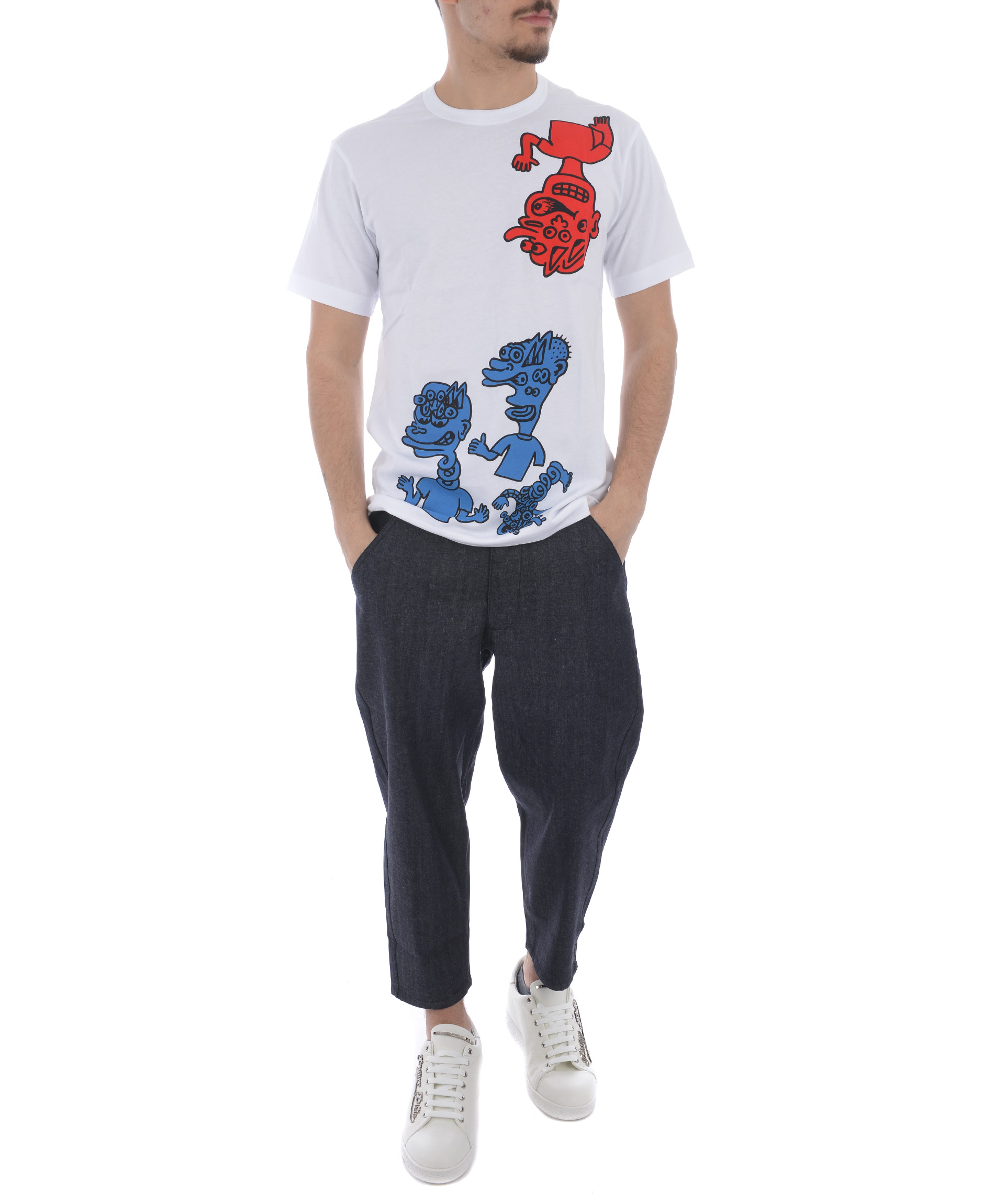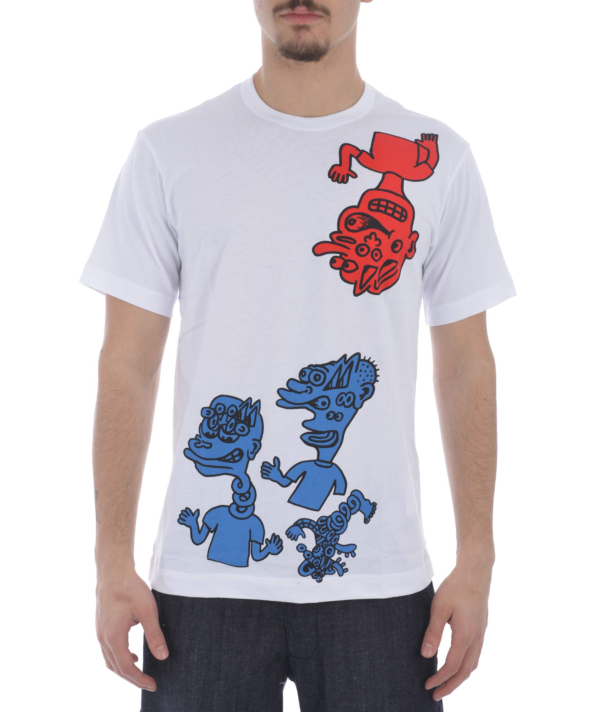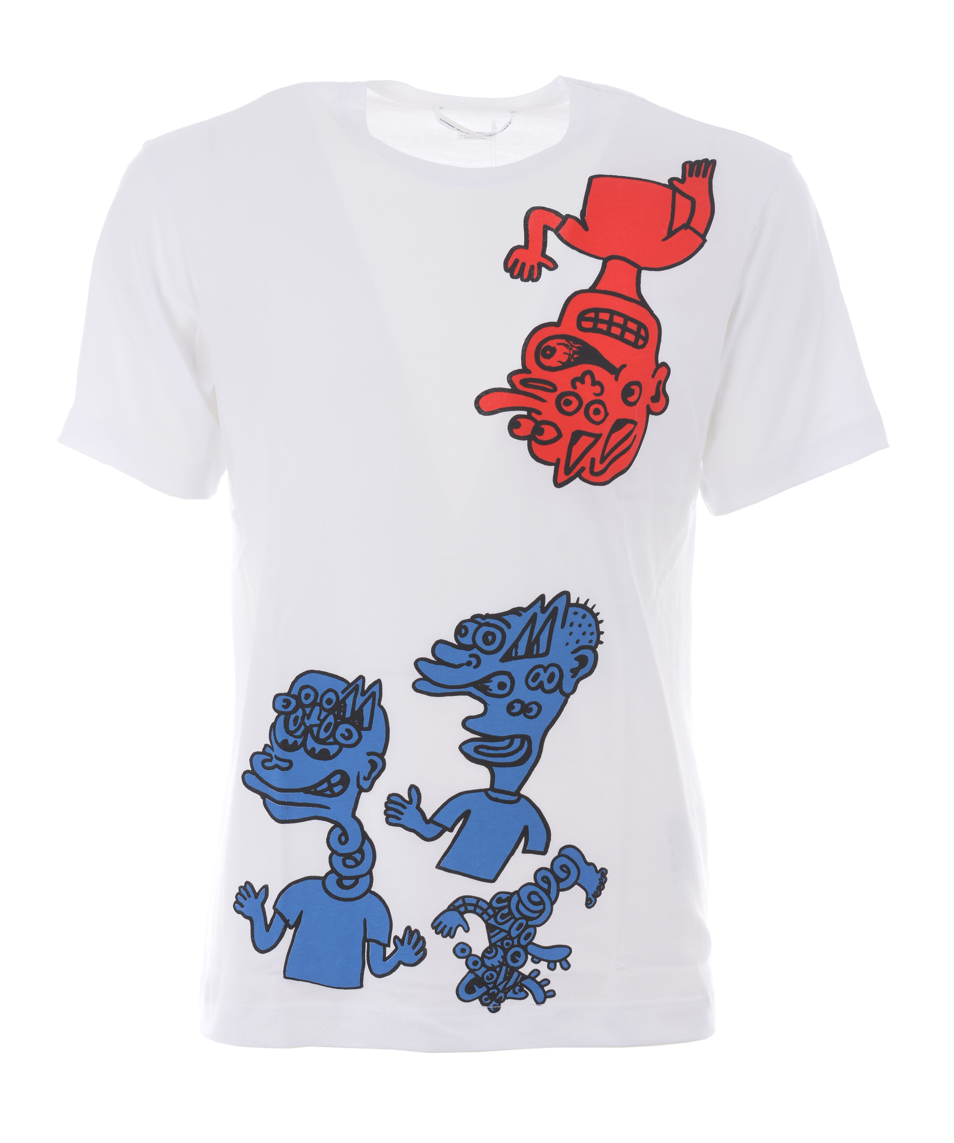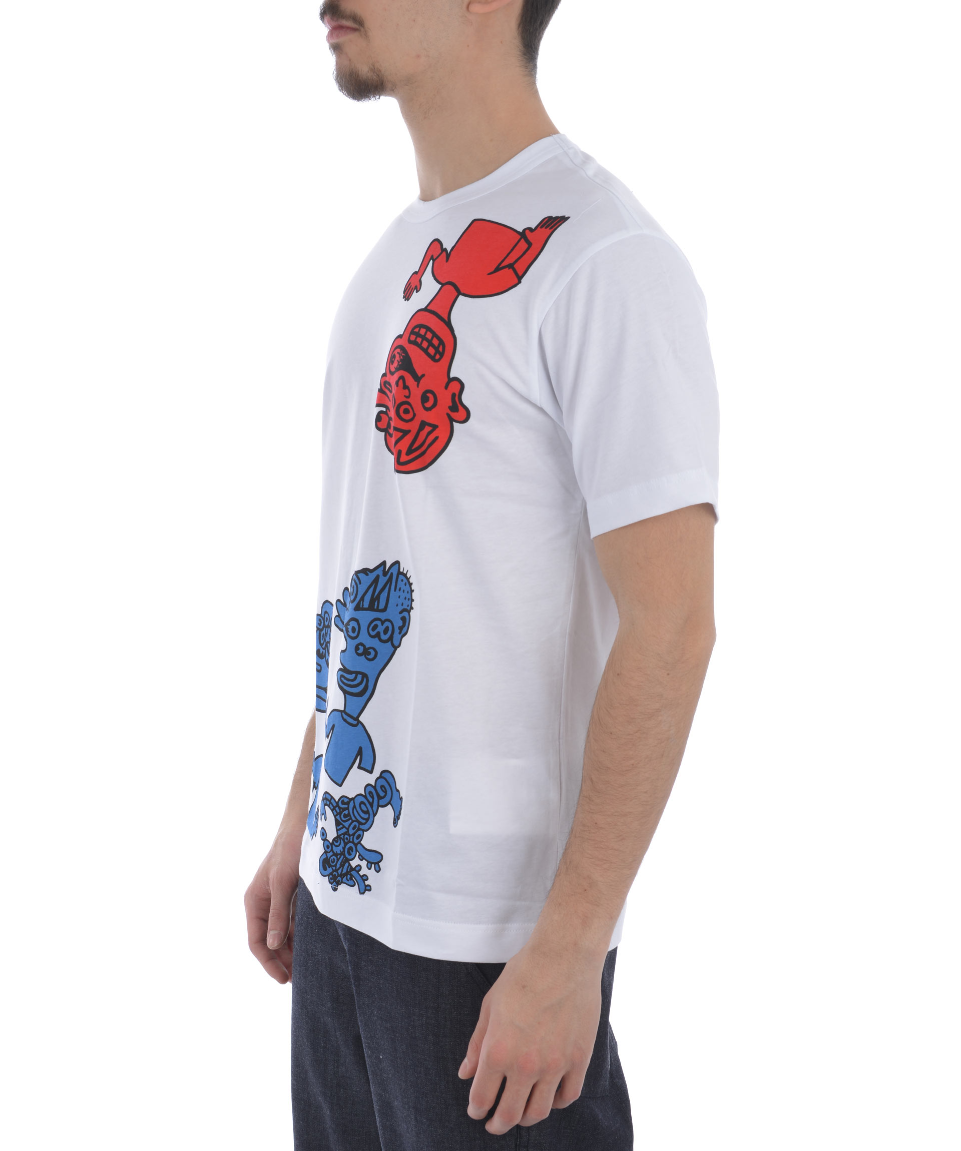 Multi-Print T-shirt from Comme Des Garçons Shirt: White Multi-Print T-shirt with round neck, short sleeves and round neck.