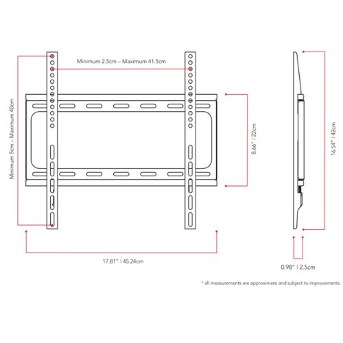 -. Feature : UL Certified Mount, Accommodates Most 26-47 Inch Televisions / Sits Just 1 Inch From the Wall, Holds Up To 30kg/66lbs / Tilting 0-Degree-10-Degree for Finding Optimum Viewing Angle / Open Frame Design Allows Wall Access to Wall Behind Mount / Simple Horizontal Adjustment Along Frame (varies depending on screen size), Universal Design Covers Most VESA Mounting Standards Between 75x75 and 400x400 for LED/LCD/PDP TVs (including 100x100, 200x100, 200x200 and configurations for lesser known brands)