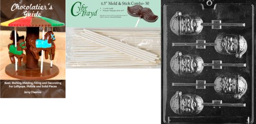 Cybrtrayd 'Santa Pop' Christmas Chocolate Candy Mold with 50 4.5-Inch Lollipop Sticks and Chocolatier's Guide