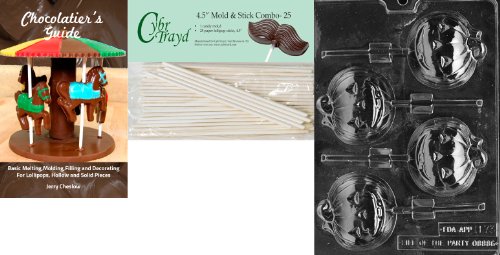 Cybrtrayd 'Large Pumpkin Lolly' Halloween Chocolate Candy Mold with 25 4.5-Inch Lollipop Sticks and Chocolatier's Guide