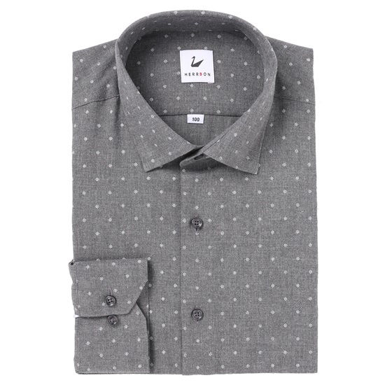 -혼방소재의 스냅부착된 멀티무늬의 슬림핏기모남방.