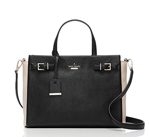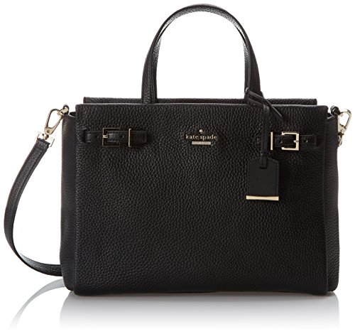Top zip closure satchel with optional shoulder strap; Gold plated metal kate spade new york signature