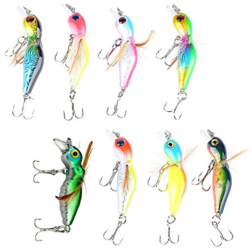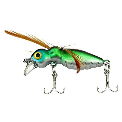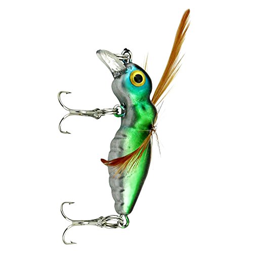 -. Feature : Lifelike insects baits hook. / This popular bait is a favorite prey to meat-eating such a Sea bass, black fish, culter, or plant-eating like grass carp, carp. / The baits can imitate the insects very well, attract the fishâ€TMs attentions, and make it easier to catch big fish! / Look like swimming action and rapid diving action into water.