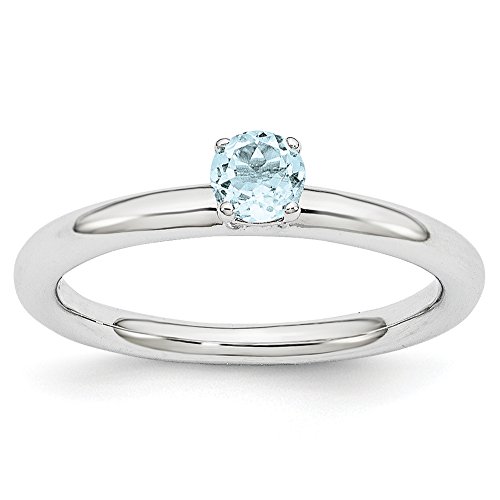 -. Title : Rhodium Plated Sterling Silver Stackable 4mm Round Aquamarine Ring