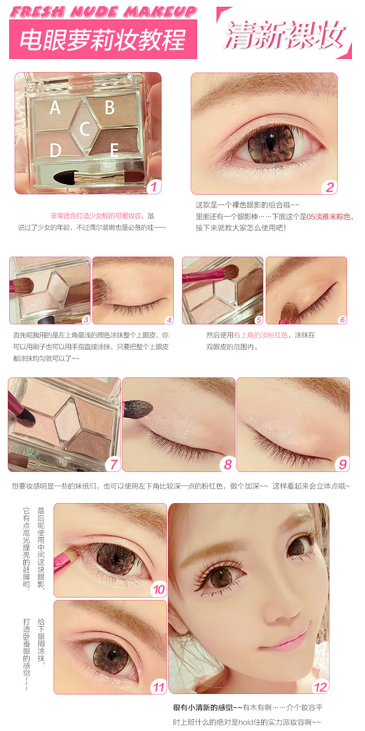 沾取上D勾勒整个眼部曲线,用刷子沾上E可以漂亮地画泪袋哦~