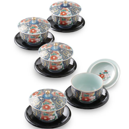 -. Title : 湯のみ : 有田焼 古典柄の魅力を楽しむ 錦金彩牡丹 黒P・C茶托付汲出 セット