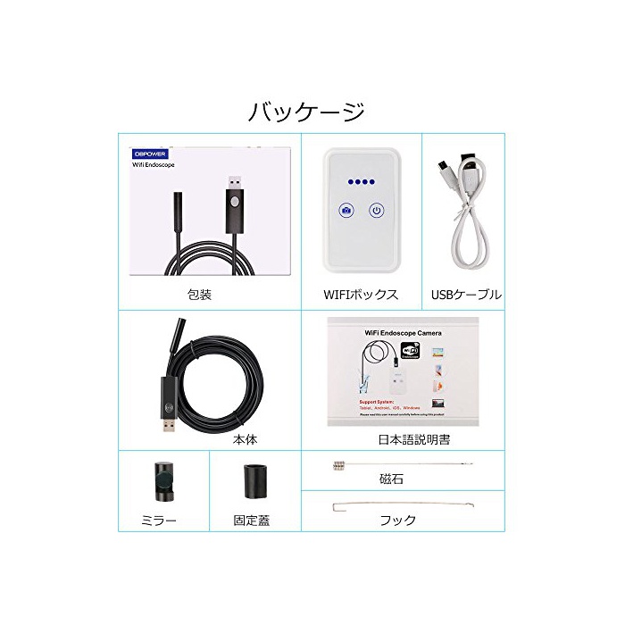 원본상품명: DBPOWER WIFI USB視鏡 200万素 8.5MMレンズWIFI ボックス付き Android/iphone/タブレット/ノトPCなど接可能 OTG視鏡 USB換アダプタ