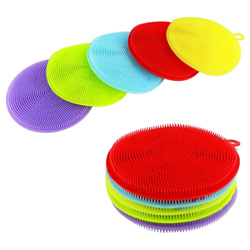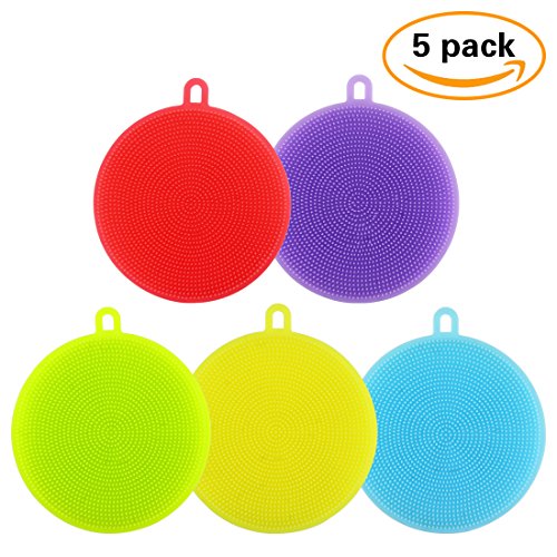 YOBAYE Silicone Sponge Scrubber, Nicertain Antibacterial Food-grade Silicone Dishwashing Brush, Non Stick Dish Towel for Kitchen Cleaning ~5pcs