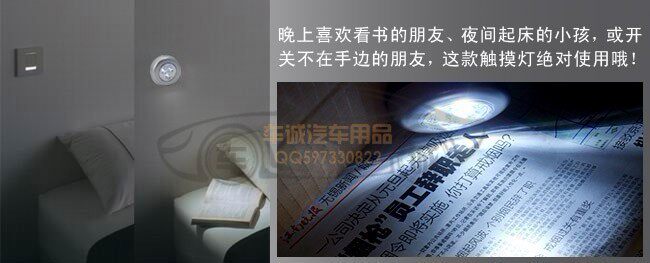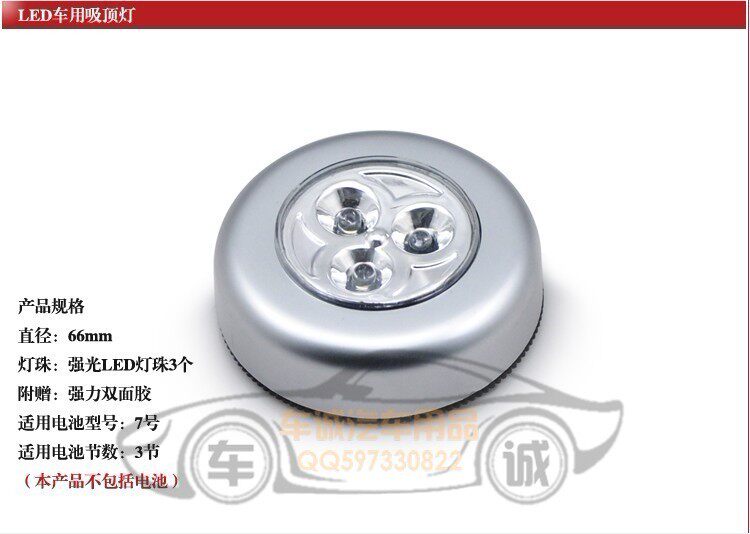 Modeling simple, compact shape, only 6.5CM product diameter, thickness of 2CM. Back with adhesive stickers that can stick in wood, plastic, metal, glass upper plane, gives you the convenience of ubiquitous lighting, indoor and outdoor, can be used anywhere!