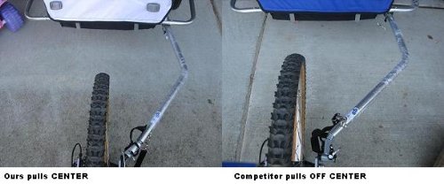 - Feature : We ship same or next business day. Adjustable handlebar, 12 inch swivel wheel that locks for jogging / Ability to store front wheel in rear. Suspension for a more comfortable ride. / Unlike other brands, our trailer pulls directly center behind the bicycle. Off center pulls can make it difficult to pull on sidewalks. / Buy an extra hitch to ease switching the pulling bicyclist / 88lbs max capacity. Make sure you pet fits inside the interior dimensions