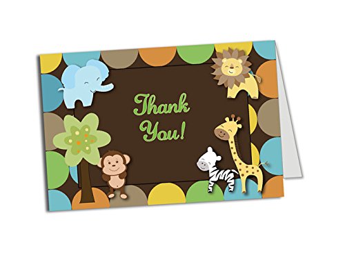 [Product Information]- 50 Folded (scored) Jungle Thank You Cards and 50 Envelopes - Baby Shower - Birthday Party - Any Occasion
