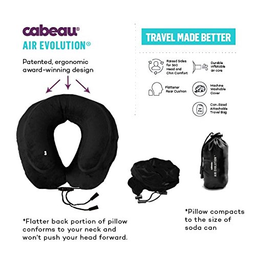 Cabeau Air Evolution Inflatable Travel Neck Pillow - The Best Travel Pillow Built for Maximum Comfort and Portability - Black