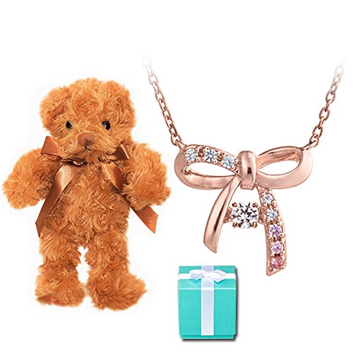 -. Title : [ロージー] Rozy × [クロスフォー] Crossfor 揺れて輝くダンシングストーン リボン ネックレス ペンダント & ショコラテディベア ぬいぐるみ セット Ri-Bonn