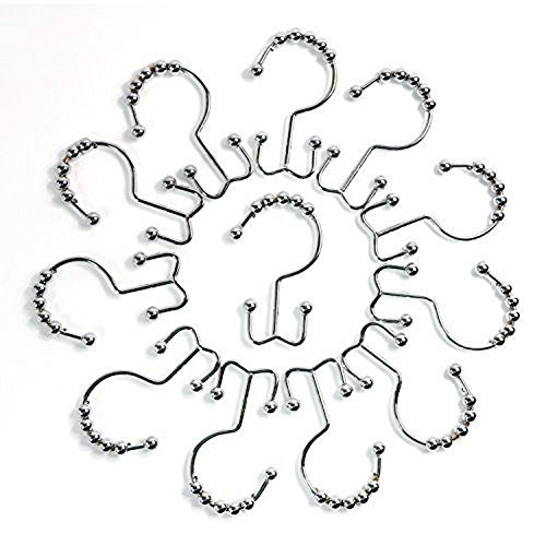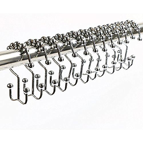 Gemdale Shower Curtain Hooks - 100% Stainless Steel, Polished Nickel, Set of 12 Rings, Double Hooks