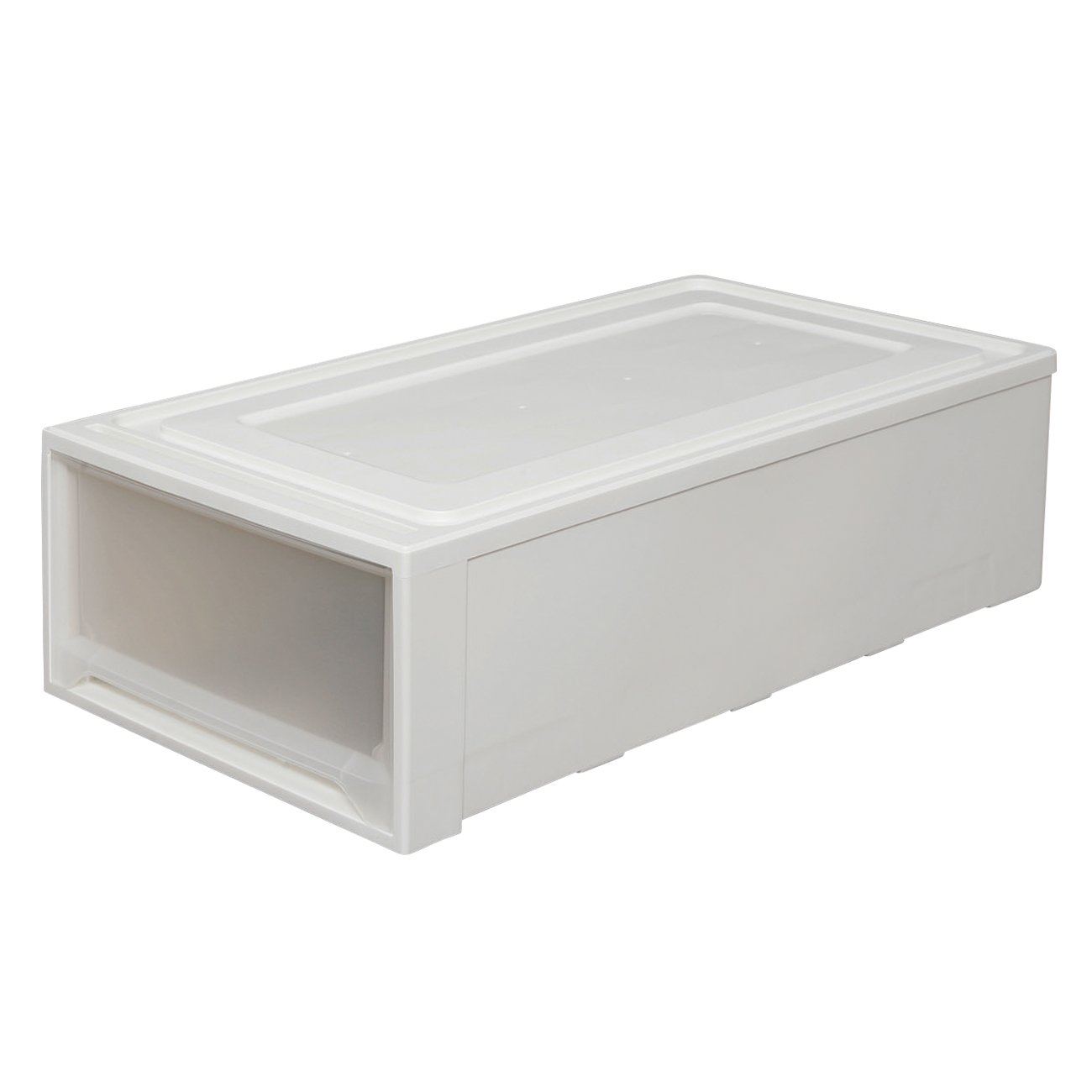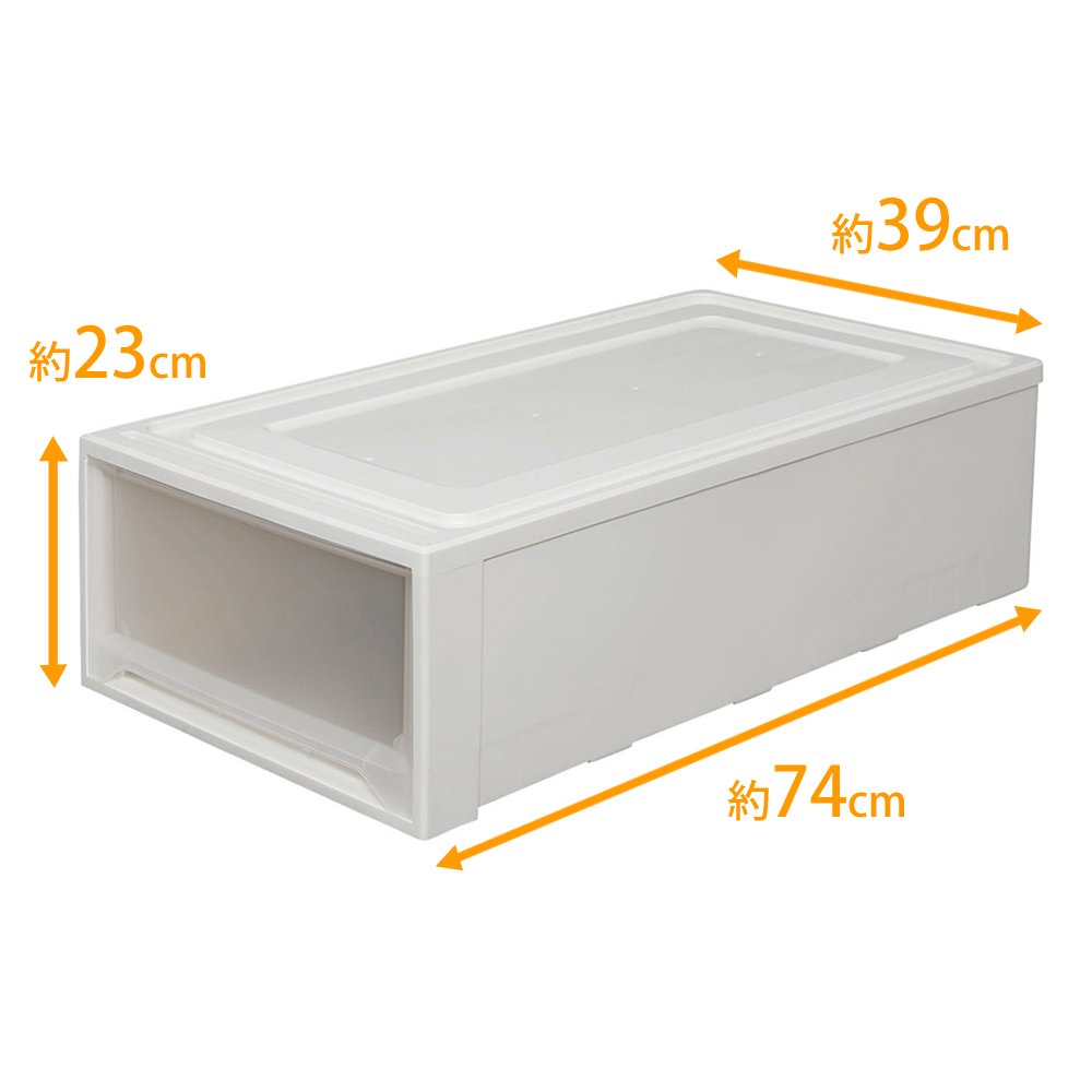 ● Capacity (L): 35.4 ● Color: White / Clear ● Dimensions (mm) Frontage × depth × height: 390 × 740 × 230 ● Effective inner dimension (mm) Frontage × depth × height: 295 × 685 × 175