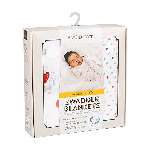 -. Binding : Baby Product -. Brand : Bebe au Lait -. Feature : Made of premium grade, 100% open-weave cotton muslin for extra breathability / Set includes 2 swaddle blankets in complementary patterns / Each Swaddle Blanket is perfectly sized at 47Óx47Ó / Colorful and modern, yet kid-friendly patterns / Multi-functional: Use as a swaddle blanket, sunshade over a stroller or car seat, or as a light blanket. -. Label : Bebe au Lait -. Manufacturer : Bebe au Lait -. ProductGroup : Baby Product -. ProductTypeName : BABY_PRODUCT -. Publisher : Bebe au Lait -. Studio : Bebe au Lait -. Title : Bebe au Lait Muslin Swaddle Set