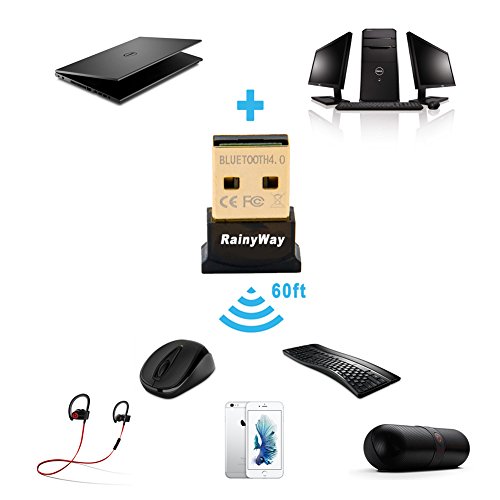 -. Binding : Electronics -. Brand : RainyWay -. Color : Black -. EAN : 0710359308893 -. Feature : OS compatibility: 32 bit and 64 bit Windows10, 8 / Windows 7 / Vista / XP / Connect your Computer/Laptop with Bluetooth Enabled Devices such as keyboards, mice,mobile phones, printers, headsets, stereo headphones and more. / Works with Microsoft's new Bluetooth 4.0 LE+EDR(Low Energy + Enhanced Data Rate). And fully compatible with earlier Bluetooth equipment(Bluetooth 2.0/2.1/3.0). / One Bluetooth Adapter can connect up to 7 devices simultaneously. And supports up to 60 feet operating range when connected to a Bluetooth Smart device. / Compact USB adapter. Built-in Buetooth software stack for Windows. -. Label : RainyWay -. Manufacturer : RainyWay -. Model : BC27802 -. MPN : BC27802 -. PackageQuantity : 1 -. PartNumber : BC27802 -. ProductGroup : PC Accessory -. ProductTypeName : NETWORKING_DEVICE -. Publisher : RainyWay -. Studio : RainyWay -. Title : RainyWay Bluetooth 4.0 Dongle - USB Bluetooth Adapter for Windows10, 8, 7, Xp - Classic Bluetooth and Stereo Headset Compatible BT400 Dongle -. UPC : 710359308893