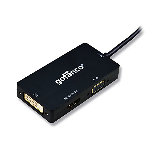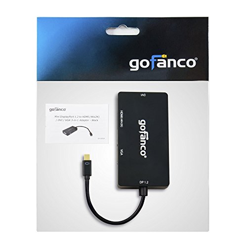 gofanco Mini DisplayPort 1.2 to HDMI/DVI/VGA 4Kx2K 3-in-1 Adapter - Thunderbolt compatible, Black, Gold Plated, for MacBooks, Surface tablets, Chromebook Pixel and laptops with a Mini DP output