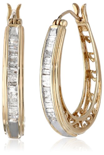 -. Binding : Jewelry -. Brand : Amazon Collection -. Color : Yellow -. Department : womens -. Feature : Yellow gold hoops embellished with intricate filigree and baguette-shape diamonds along front curve / Hinge and notched-post backings / All our diamond suppliers confirm that they comply with the Kimberley Process to ensure that their diamonds are conflict free. / Imported / Carat weight listed is the total for all stones. -. Label : Verigold Jewelry -. Manufacturer : Verigold Jewelry -. Model : 163234/10Y/HR/ER10QY/STD -. MPN : 163234/10Y/HR/ER10QY/STD -. PartNumber : 163234/10Y/HR/ER10QY/STD -. ProductGroup : Jewelry -. ProductTypeName : FINEEARRING -. Publisher : Verigold Jewelry -. Studio : Verigold Jewelry -. Title : 10K Yellow Gold Diamond Hoop Earrings (1/2 cttw)