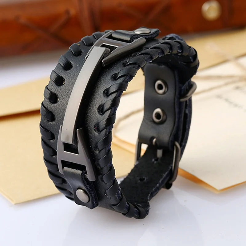 Item Name:Adjustable Wide Leather Bracelet Braided Bangle Jewellery