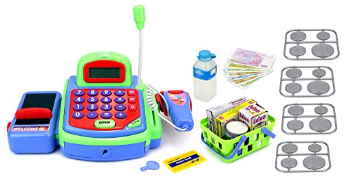 -. Title : Velocity Toys My First Cash Register Pretend Play Battery Operated Toy Register w/ Microphone, Scanning Action, Calculator, Money, Groceries