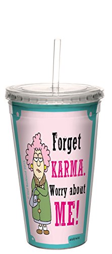 Tree-Free Greetings 16-Ounce Double-Walled Cool Cup with Reusable Straw, Aunty Acid Forget Karma (CC98535)