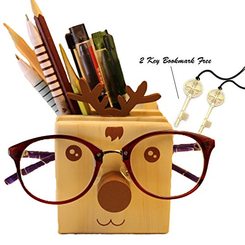 Elk Creative Pencil, Holder Wooden Eyeglass Stand Phone Rack Holder with Metal Key Bookmark