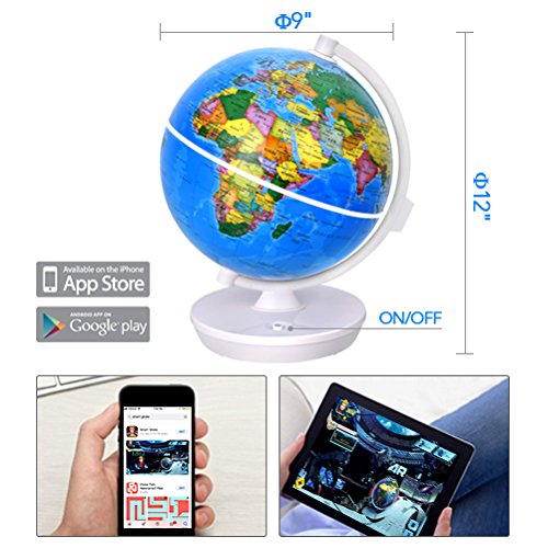Built-in Augmented Reality Technology! Education in Amusement! You can enjoy the AR app experience through this smart globe as long as you download the customized APP from App Store or Google play.
