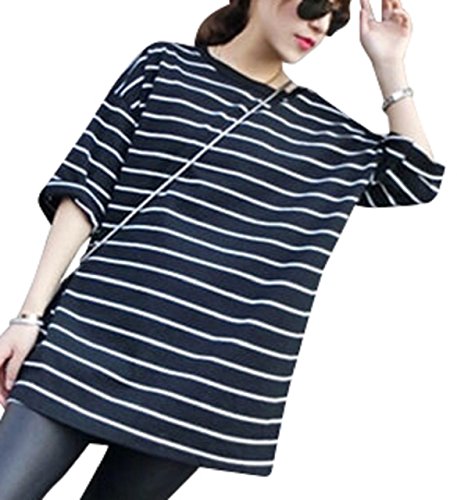 -. Title : (スカイシイ) skySea T シャツ カットソー ボーダー オーバー サイズ ゆったり 半 袖 五分 女 性 用 レディース 白 黒 M L XL (黒 : M)