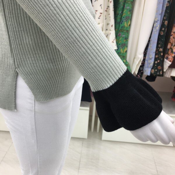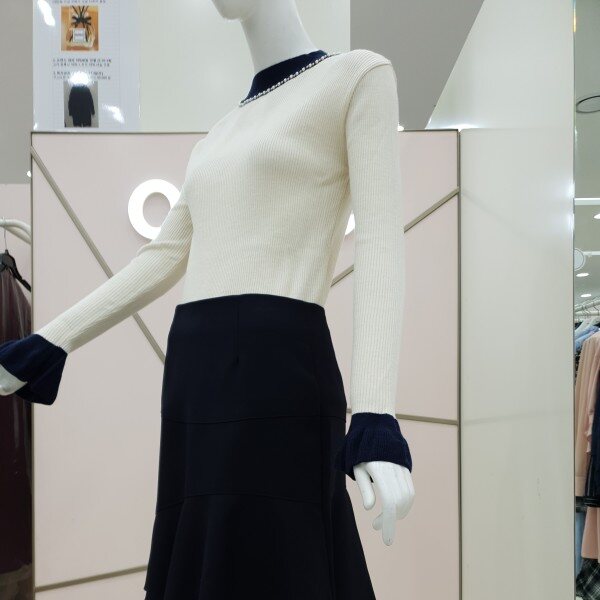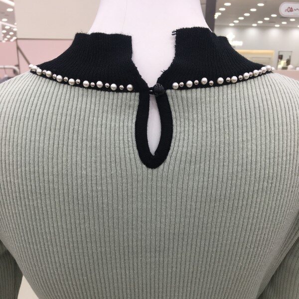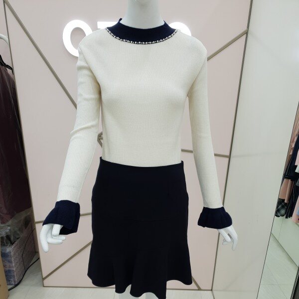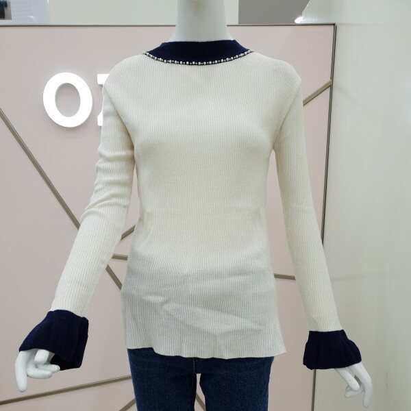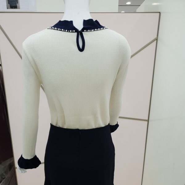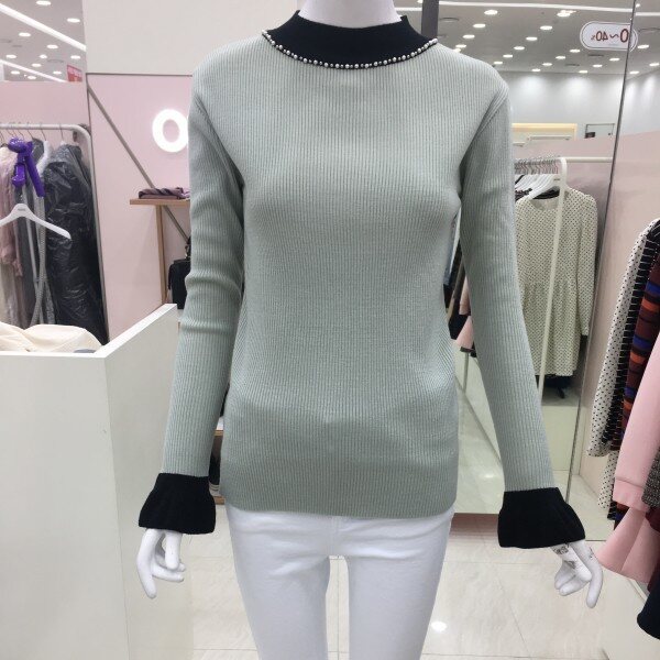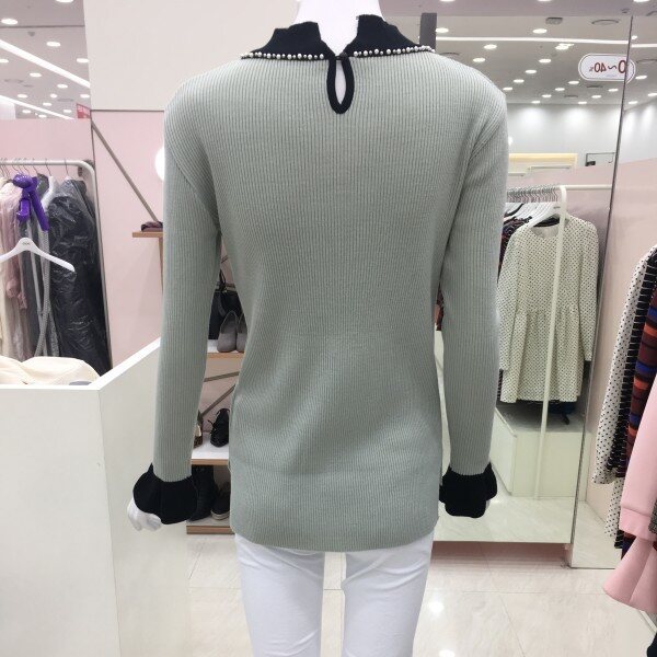 넥진주장식과 프릴소매가 예쁜 부드러운 니트에요~