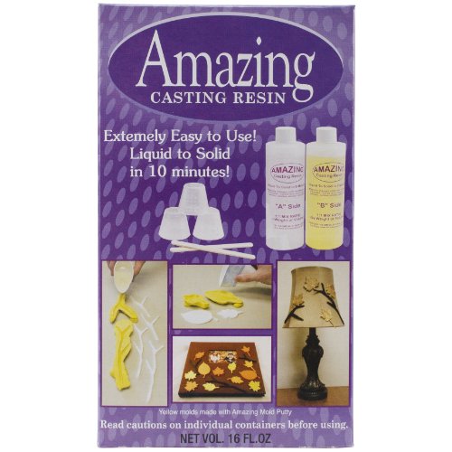 AMAZING PUTTY-Amazing Casting Resin Kit. Amazing Casting Resin is the easiest and safest way to create exact cast replicas of practically anything in minutes! Simply mix equal amounts of resin and hardener and pour into your mold (mold putty sold separately). Less than 10 minutes later remove a beautiful cast replica of your original. Your cured Amazing Casting Resin piece can be painted stained dyed tapped drilled and machined. This package contains two 8oz bottles of casting resin (mix the two to create the casting) three 2 tablespoon cups two stir sticks and instructions. Made in USA.Feature