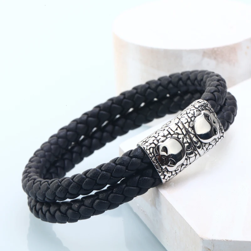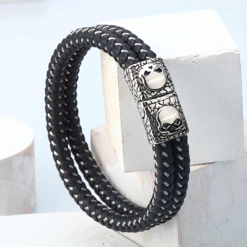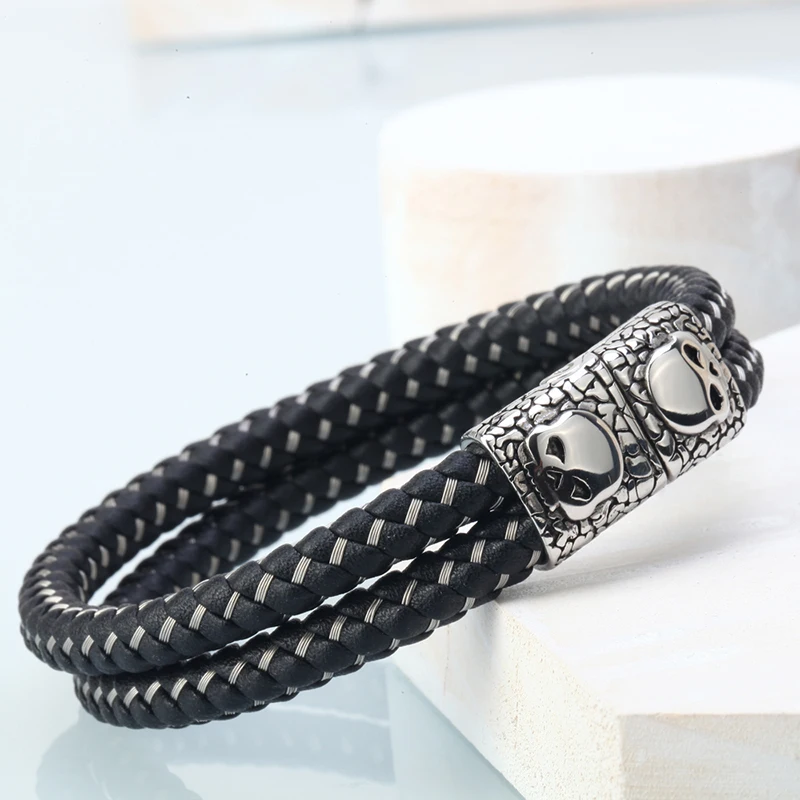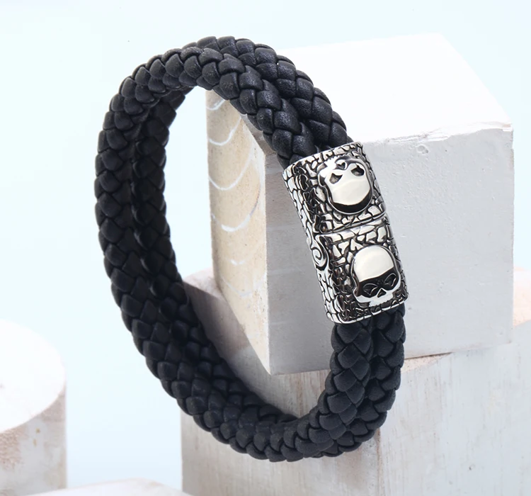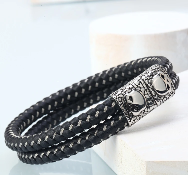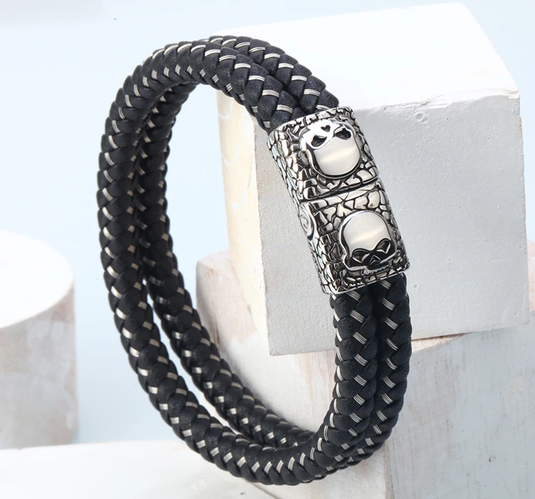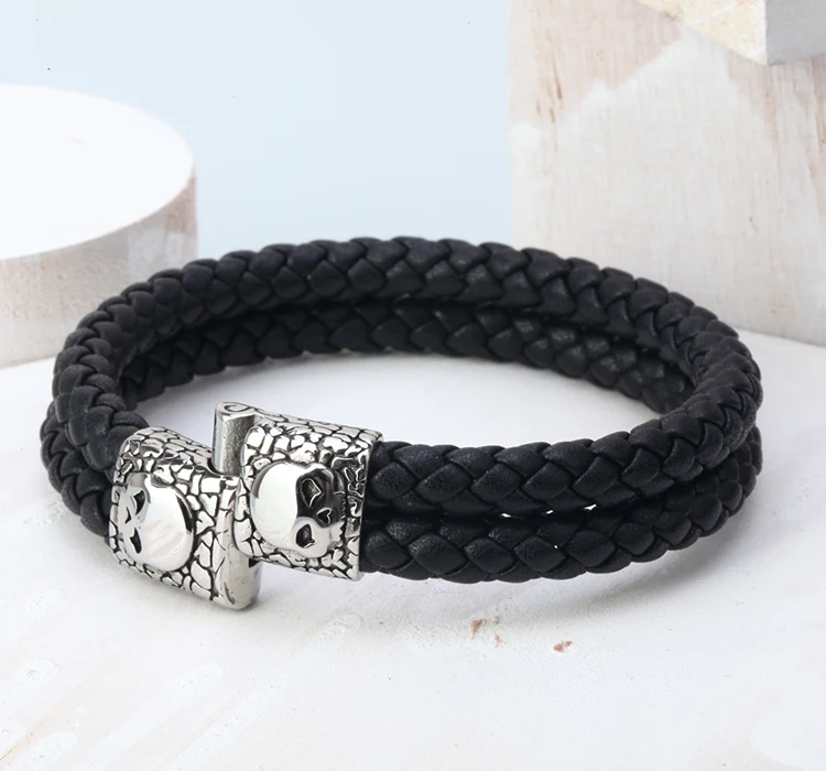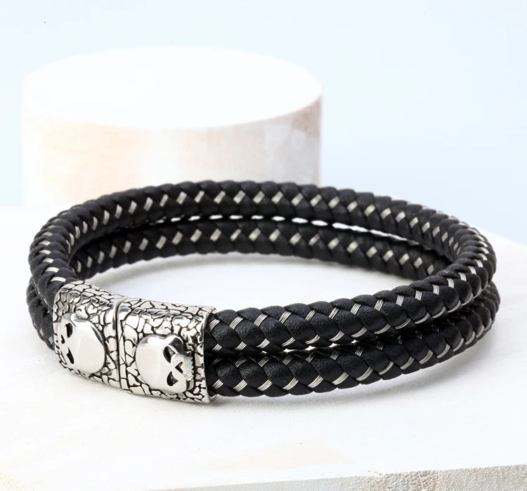 Stainless Steel +Genuine Leather:men jewelry