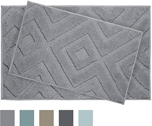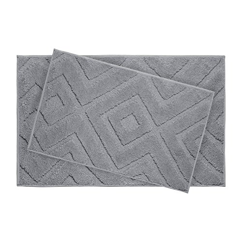 Jean Pierre Lilah Plush Micropolyester Textured Bath Mat Set, 21 x 34", Wild Grey (2 Piece Set)