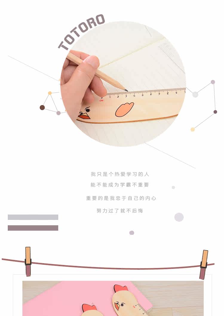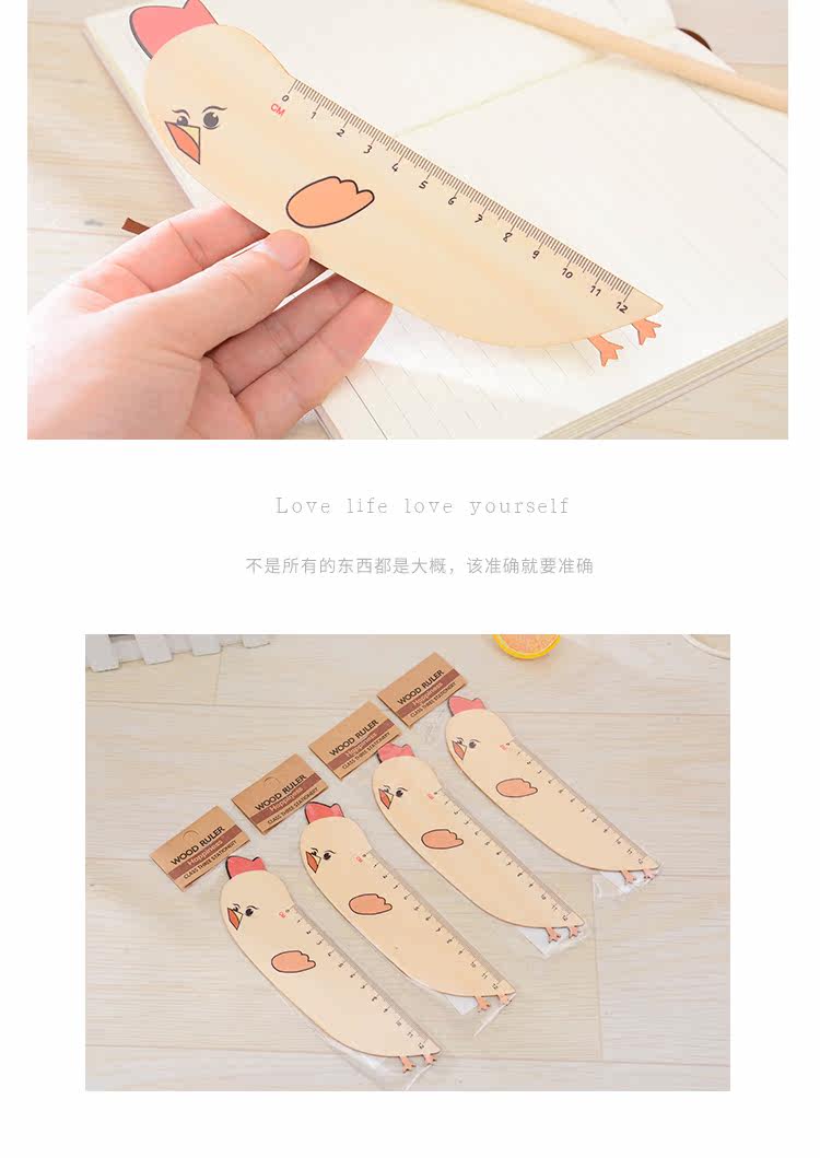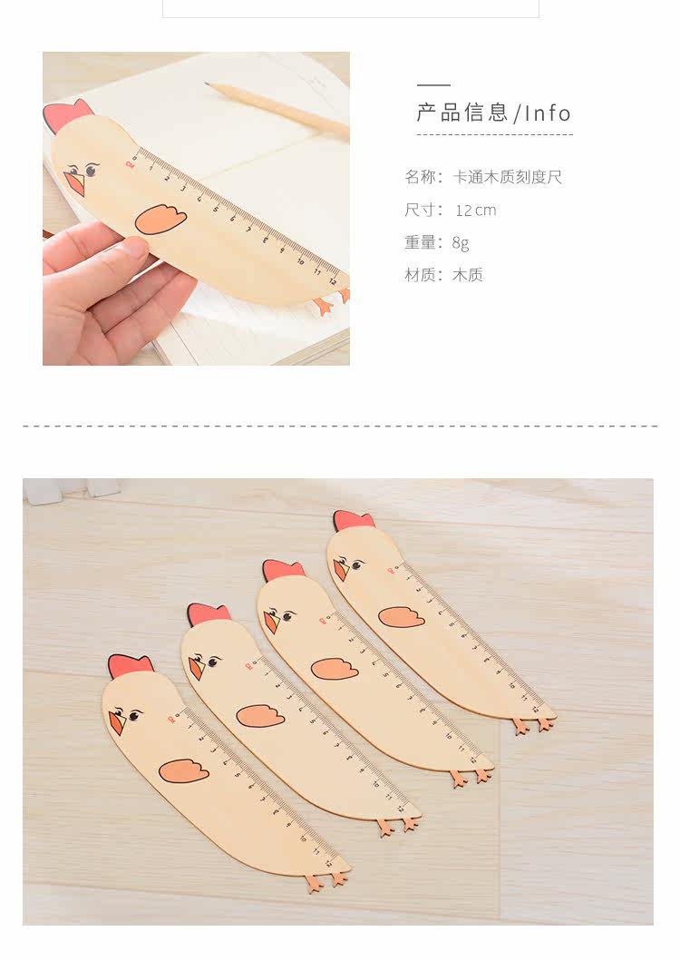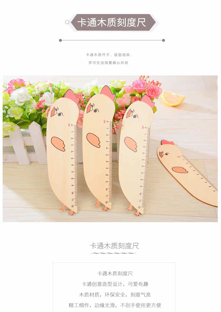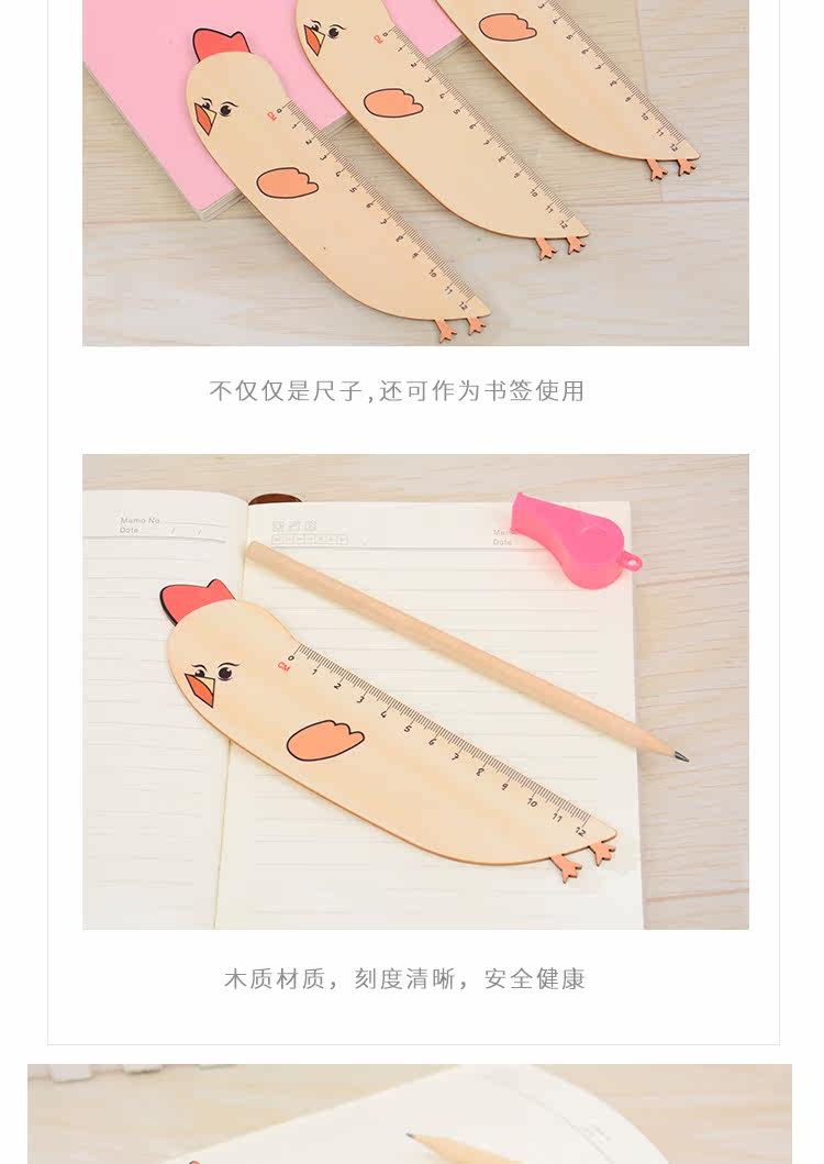 小学生专用卡通木质刻度尺 绘图直尺儿童文具书签尺子携带方便