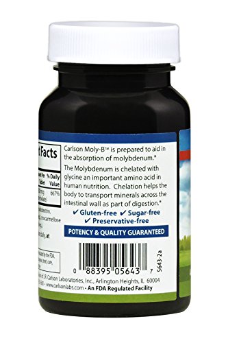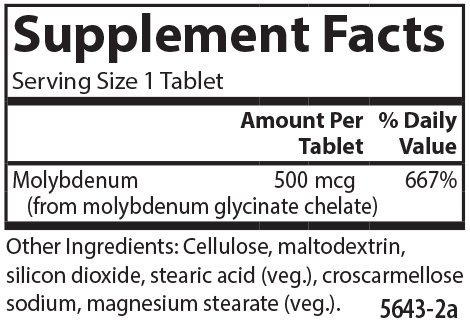 Molybdenum aids in fat and carbohydrate metabolism, which provides our body with energy. It also works as a powerful antioxidant, helping the body fight free radicals. Within our body, Molybdenum is stored in the liver, bones, glands, and kidneys and can also be found in the skin, muscles, spleen, and lungs. Each Moly-B tablet provides 500 mcg of molybdenum from 20 mg of molybdenum glycinate.Feature