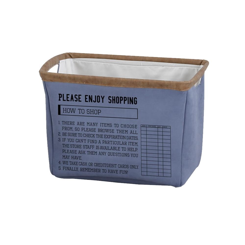 フェイクスウェード風生地で作られた触りごこちがソフトなボックスです。ショッピングシートをイメージしたプリントには買い物のメソッド(方法)が書かれていてユニークなデザインとなっています。 |