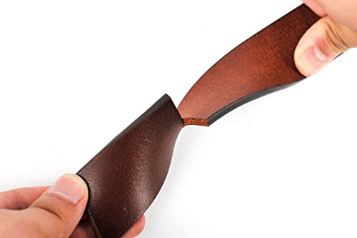 Material:100% Genuine Cowhide Leather.Very soft,durable,even long-term use,the belt still maintain a good shape,due to the one piece cowhide leather belt,the belt and the holes will not fell apart and will last long.