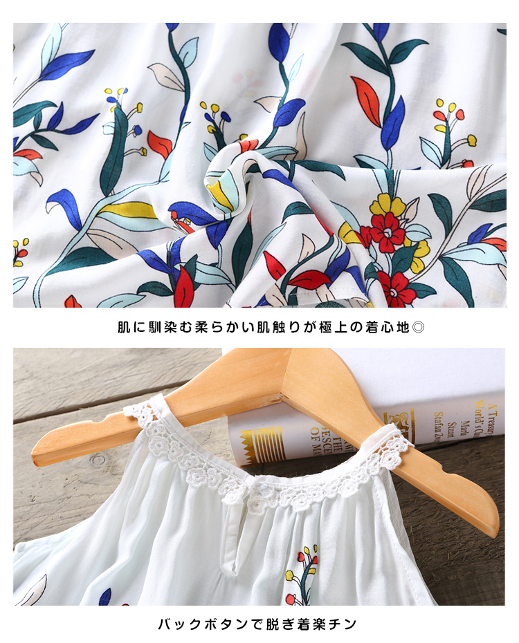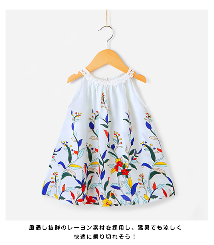 | 極上柔らかく涼しい花柄ワンピース。清楚感たっぷりの花柄が好感度アップ。襟ぐりに花モチーフレースを添えて、女の子の可愛らしさをより一層引き立ててくれます。風通し抜群のレーヨン素材を採用し、猛暑でも涼しく快適に乗り切れそう!裾に向けて広がるフレアシルエット身頃を拾わない、リラックスに穿いていただけます。 | |