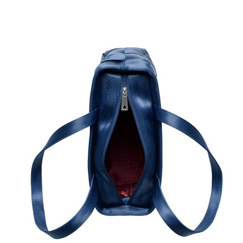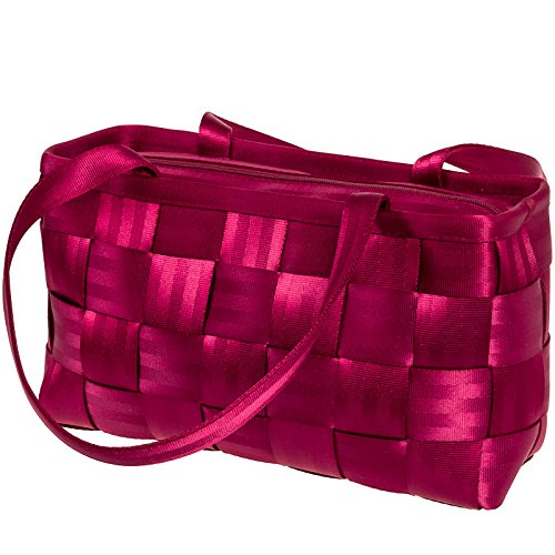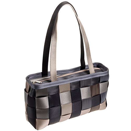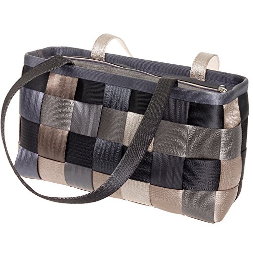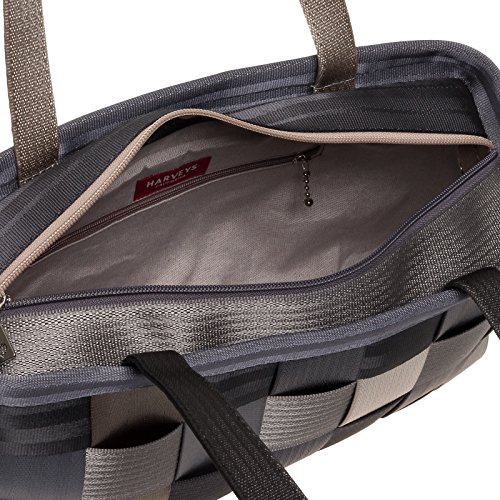 -. Feature : Harvey's classic weave design / Made of genuine, durable automotive seatbelts / Zipped top closure, 2 seatbelt handles, 4 protective metal feet / 1 interior D-ring, 1 interior zip pocket, 5 interior slip pockets / 13" x 3.75" x 7.5", 10.5" shoulder drop