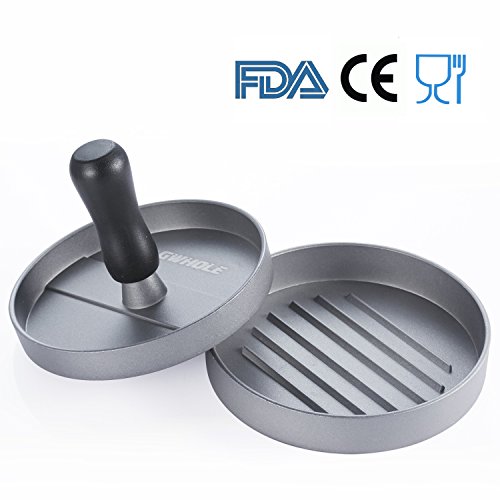 GWHOLE Non-Stick Burger Press Aluminum Hamburger Patty Maker with 100 Wax Papers for BBQ Grill