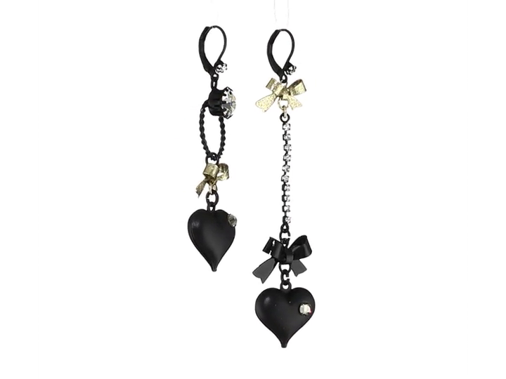 Betsey Johnson Mismatch Black Bubble Heart and Gold Bow Drop Earrings
