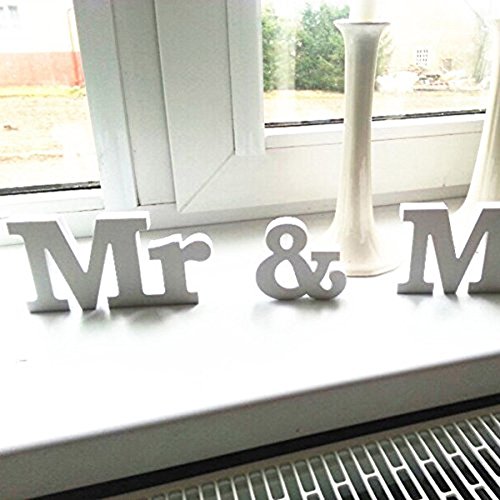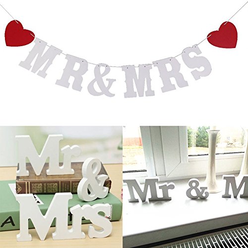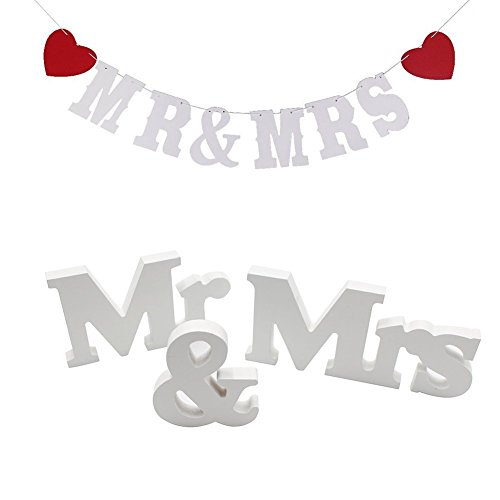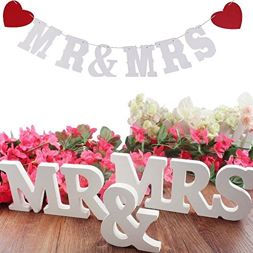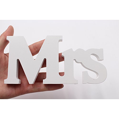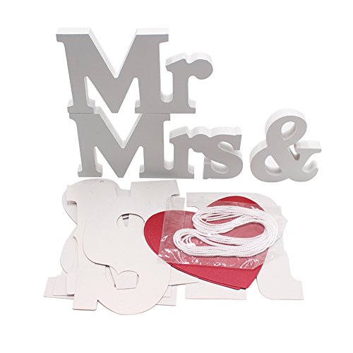 Future 2 Set Mr & Mrs White Wooden Letters for Wedding Party Ceremony Decoration sign Top Table Present (White+Red)