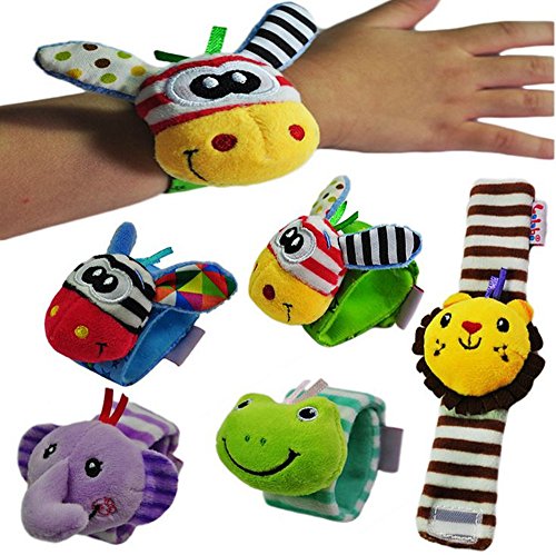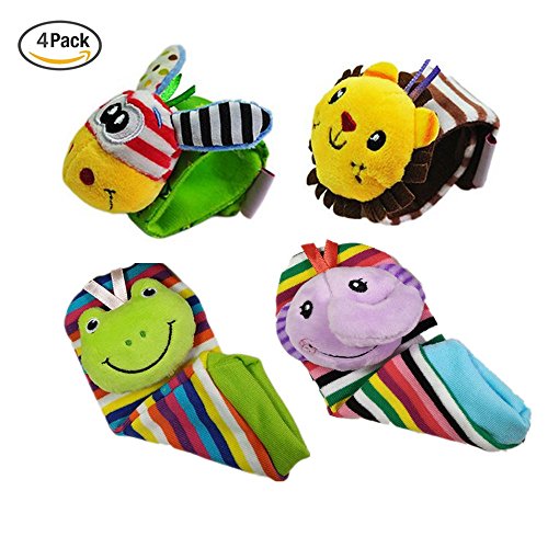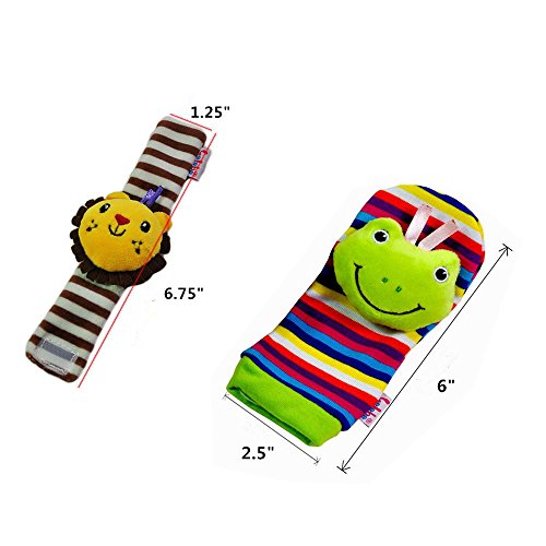 leoyoubei Baby Socks Toys Wrist Rattles and Foot Finder 4 kinds of animals Multicolor 4pack